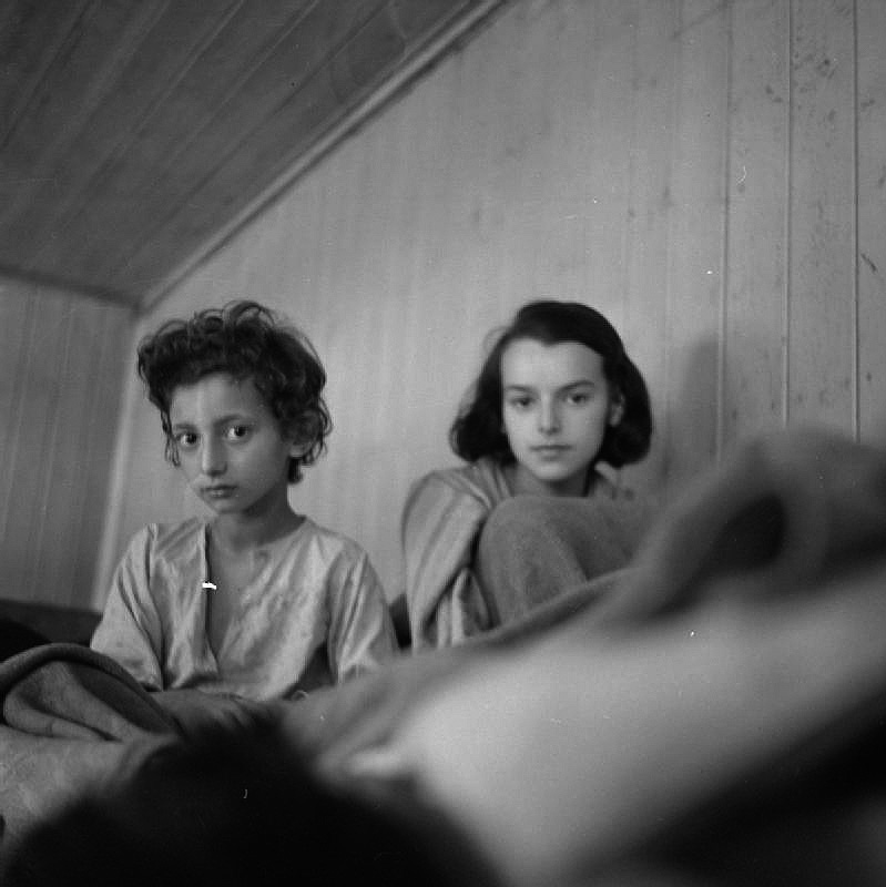 Young girls suffering from typhus recovers in their new cot in No 3 Camp. They have been bathed, reclothed and put into a clean bed.(IWM Caption) Dated: 20 April 1945 Source: Imperial War Museum (BU 4103)