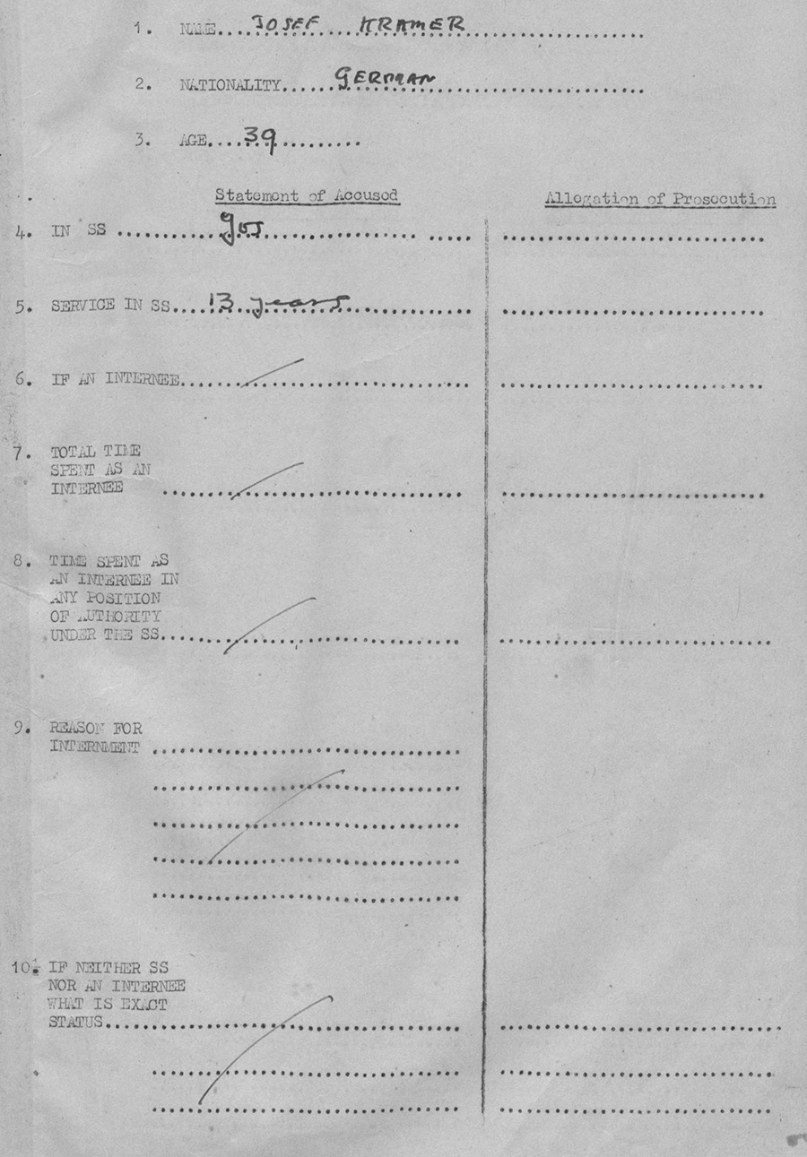 Exhibit 151.01 Form relating to previous service of the accused Josef Kramer
